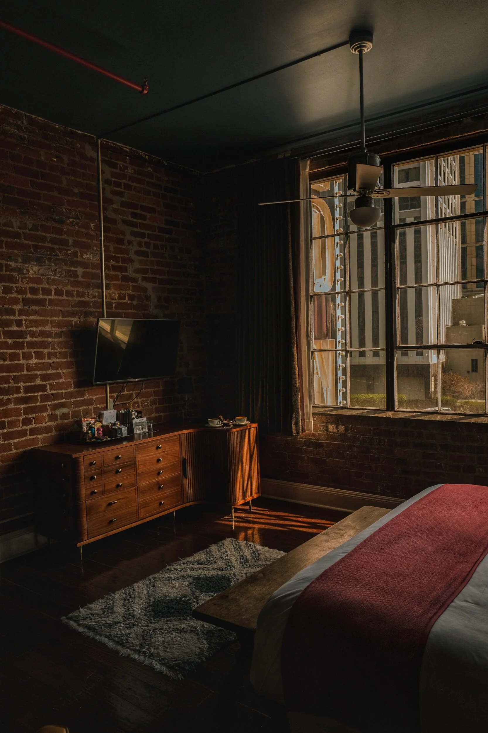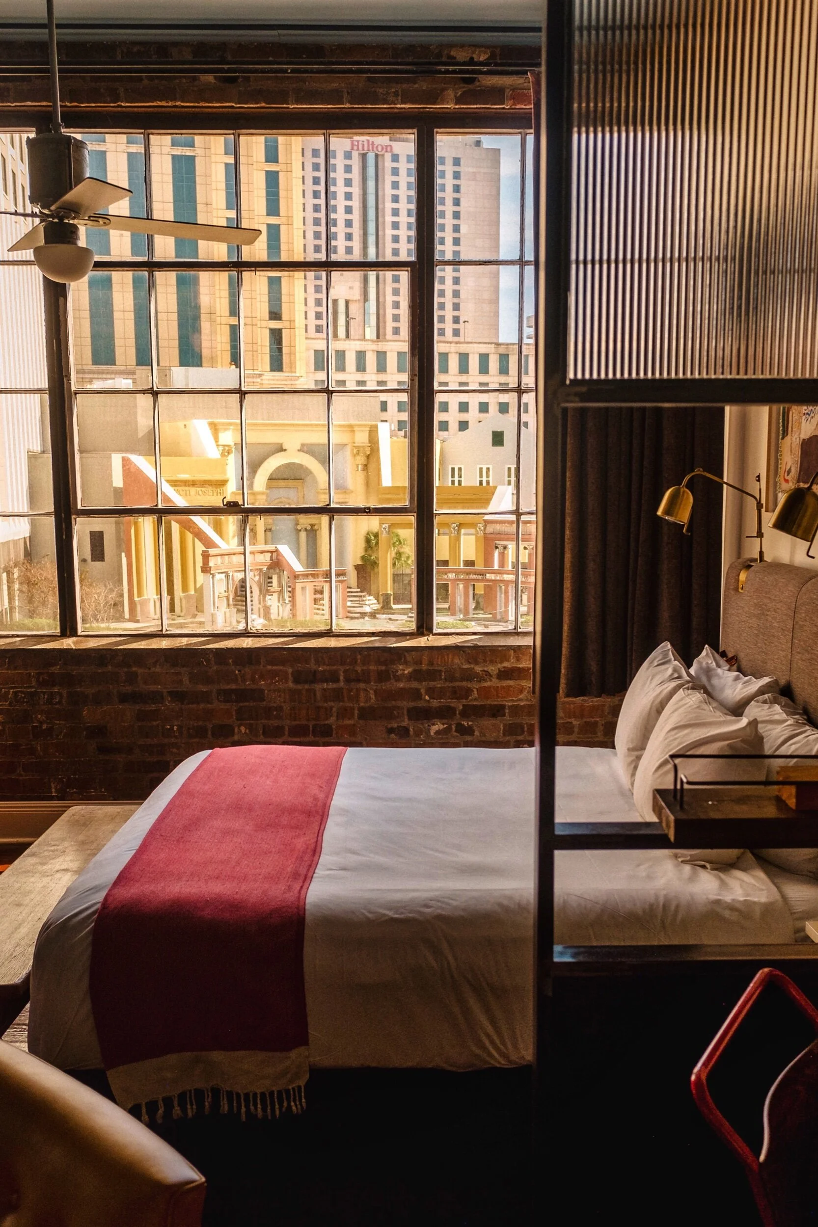 The Old No 77 Hotel & Chandlery, is set in a restored 19th Century warehouse. With its original hardwood floors, exposed brick and beams, and original furniture; it gives you that rustic elegance feel. Downstairs they have Compère Lapin, a must stop for all of the foodies out there by James Beard winner, Nina Compton. There’s also a cafe downstairs for all your coffee and pastry needs. The rooms have floor to ceiling windows which bring in the most beautiful light, that brings to life all the exposed brick. They also have highly curated local artwork hanging on the walls. With its central location in the Arts district, and all its charm, The Old No 77 is definitely a Nawlins stay we recommend.